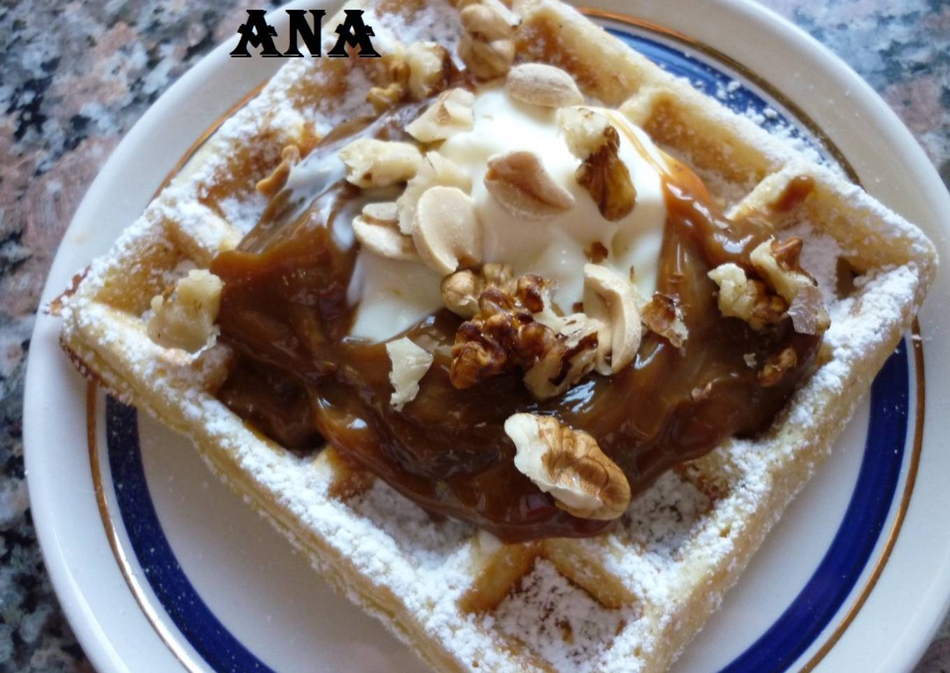 Tenía ganas de comer unos ricos waffles y encontré esta receta en la tapa de un queso crema y me encanto.Es una masa muy esponjosa. Además es rendidora con las medidas que pondré salen 10 waffles más o menos. Los acompañe con queso crema, dulce de leche, nueces y maníes tostados.