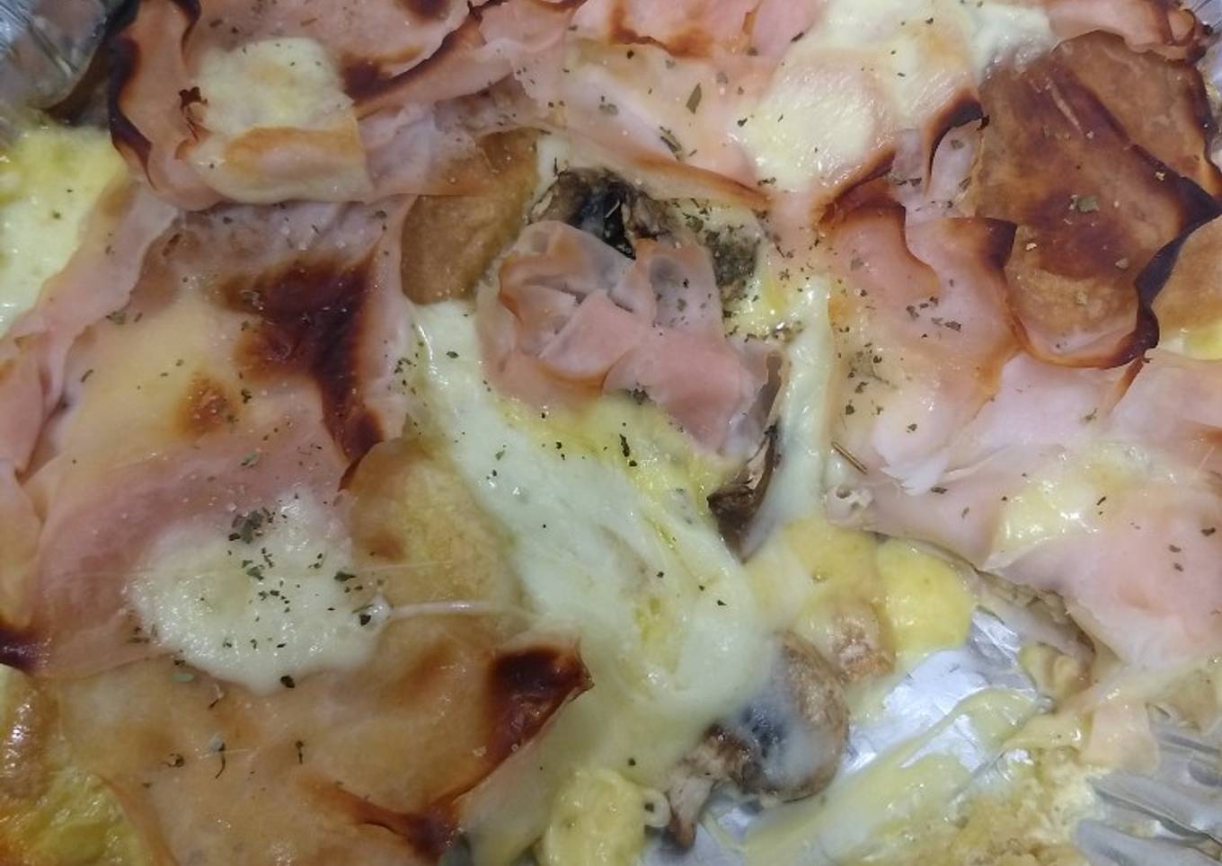 - Colocar encima los champiñones un poco de queso y encima jamón y un poco de orégano y sal meter al horno durante 20 minutos