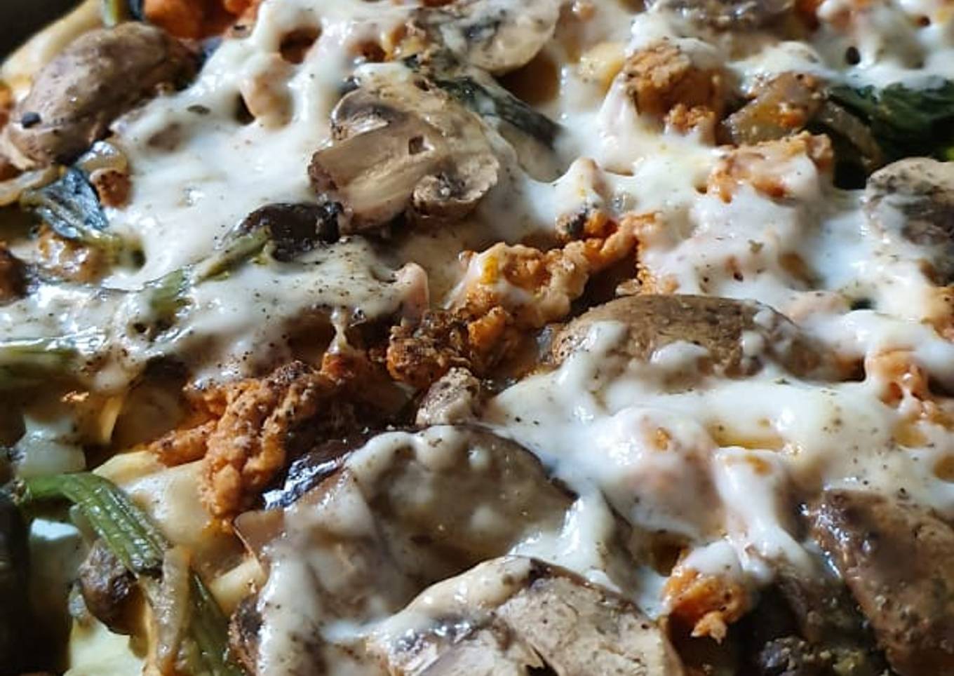 - Entre cada capa dejamos quesito desmenuzado para que se derrita con el champiñón y suelten jugo ya que acabamos la cubrimos y ya precalentado nuestro horno a 180 c metemos nuestra lasagnita por 20 min si quieres puedes a los 15 minutos retirar el aluminio para que gratine nuestro queso 🔥🍴💖