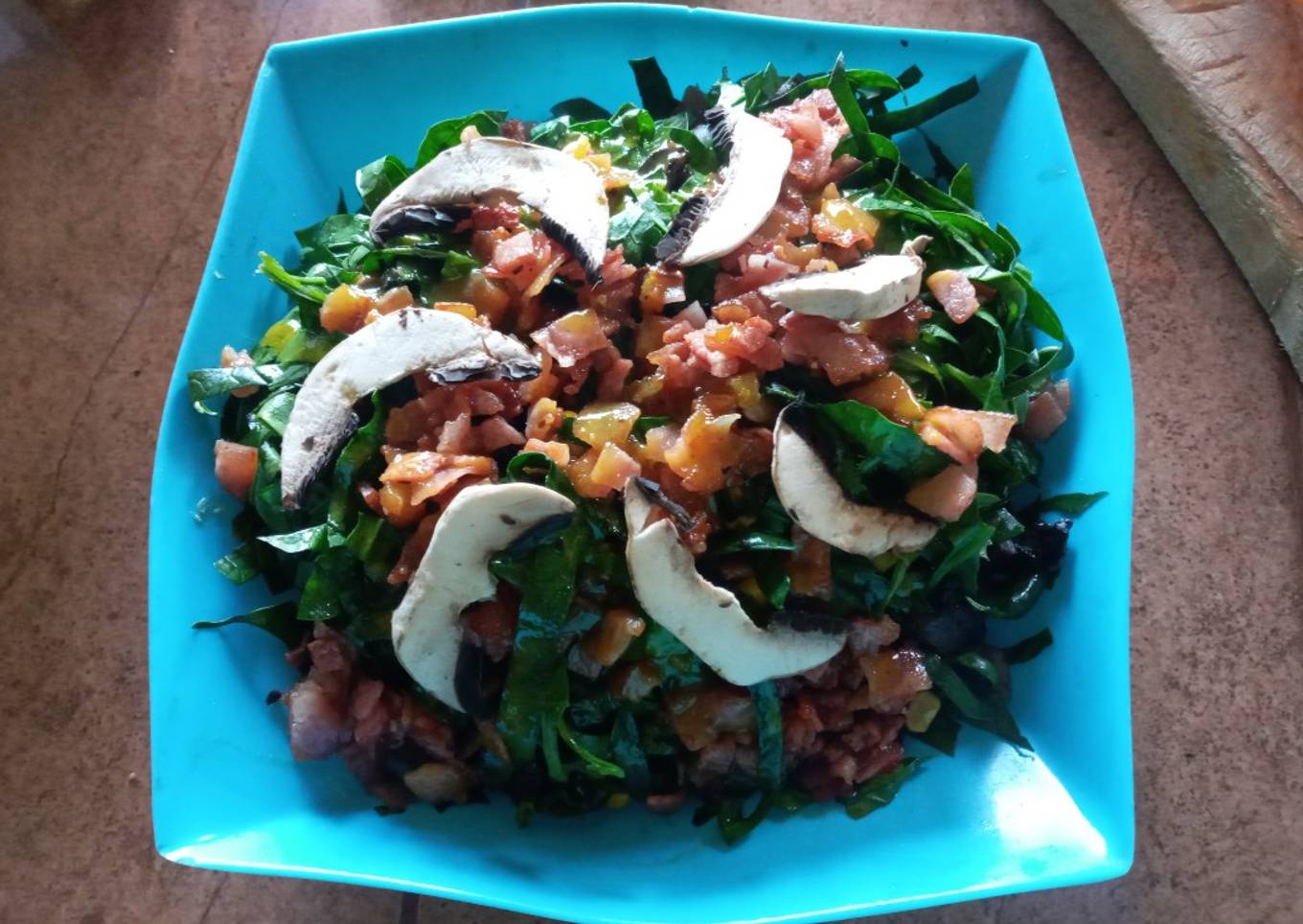 Hello everybody, hope you're having an incredible day today. Today, I'm gonna show you how to prepare a special dish, Ensalada de espinaca con tocino y cariño. One of my favorites food recipes. For mine, I'm gonna make it a little bit unique. This will be really delicious.