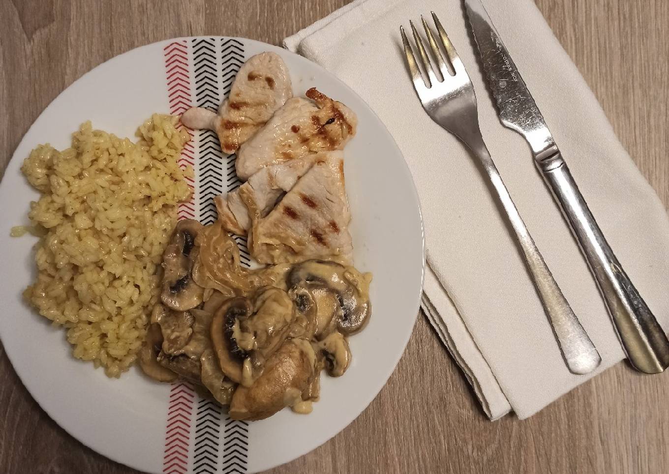 Para acompañar a un plato de carne o pescado. En esta ocasión acompañamos con unos medallones de pavo y un poco de arroz al curry