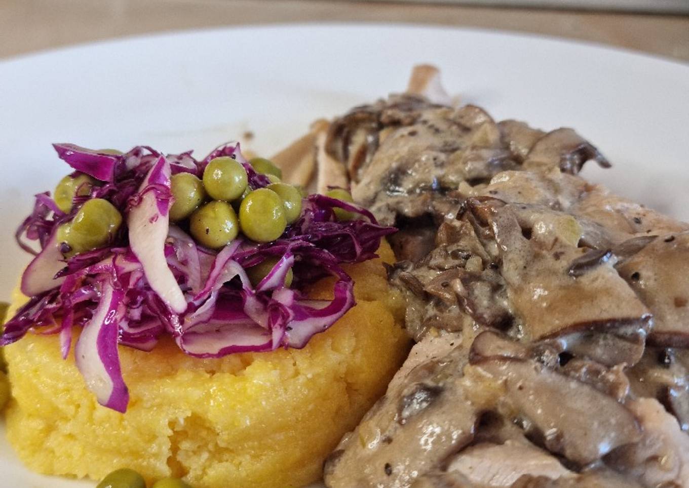 Carne de cerdo con champiñones y polenta