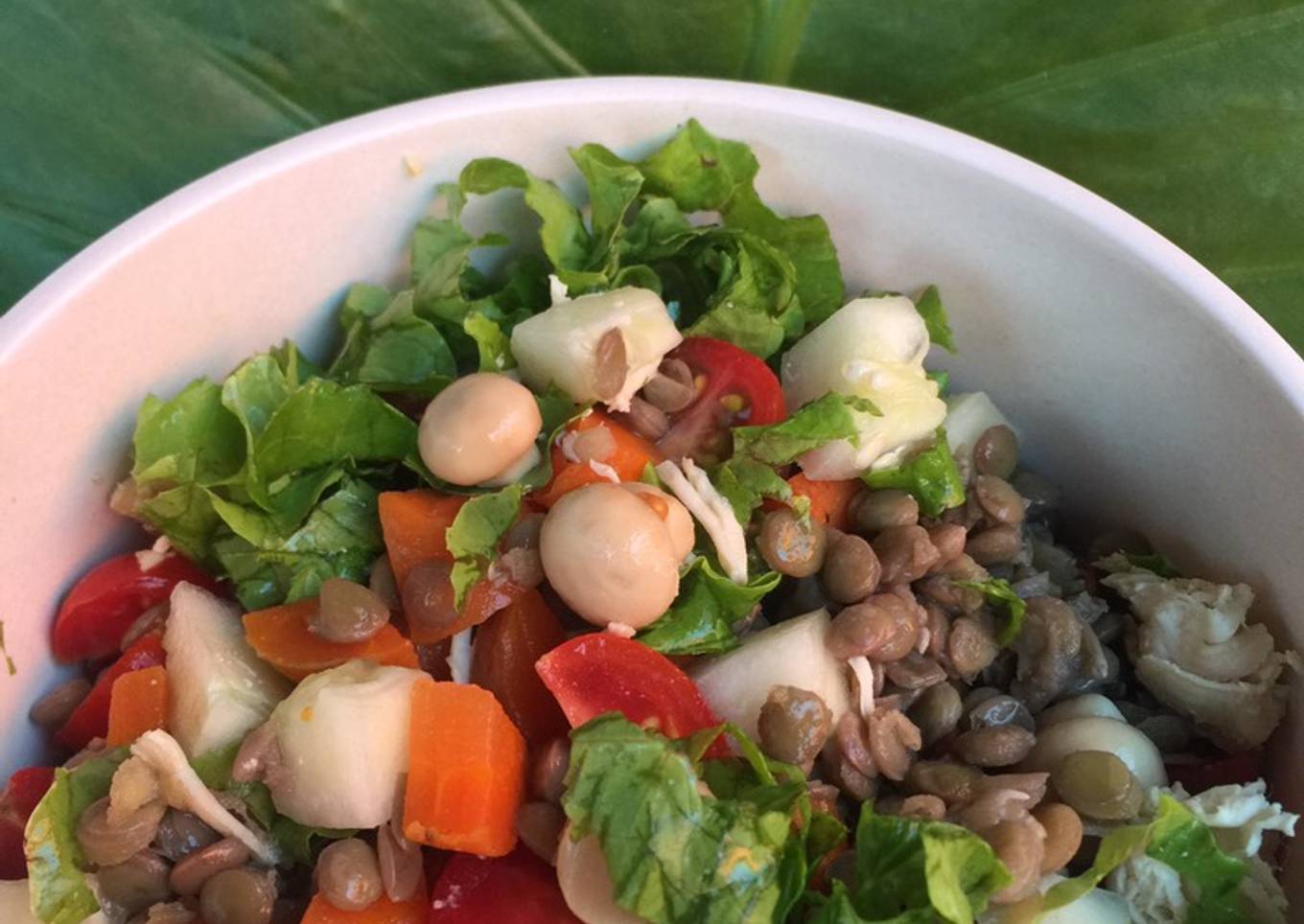 - Picamos el pepino (yo le saco la cáscara y las semillas). Agregamos los champiñones y las lentejas